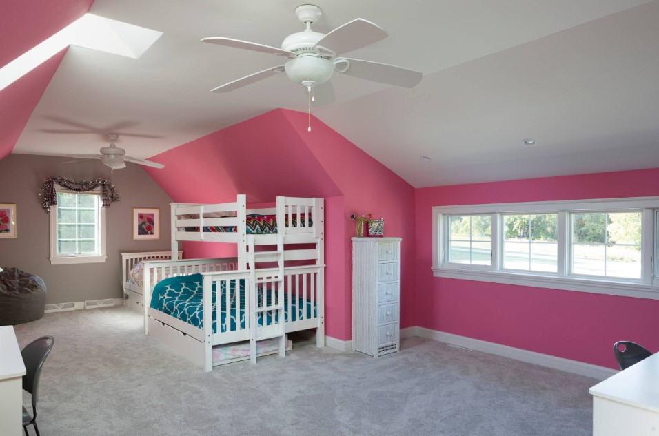 С помощью цветной отделки можно достаточно просто выделить сразу несколько функциональных интерьерных зон в комнате, или же, некоторым образом, откорректировать помещение. Хорошее сочетание цвета: это белый, серый плюс розовый. Такое сочетание идеально подойдет для оформления спальни в современном или же скандинавском интерьерных стилях, или же в стиле прованс.