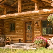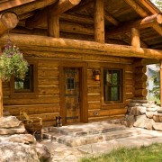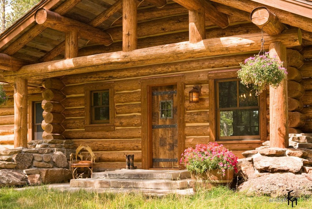 Все элементы конструкции выглядят очень брутально и грубо. В этом и состоит отличие такой постройки от других. Необработанное дерево и кованая фурнитура становятся неотъемлемой частью этого дома. Массивная дверь и ставни сочетают в себе декоративную и практическую функции.