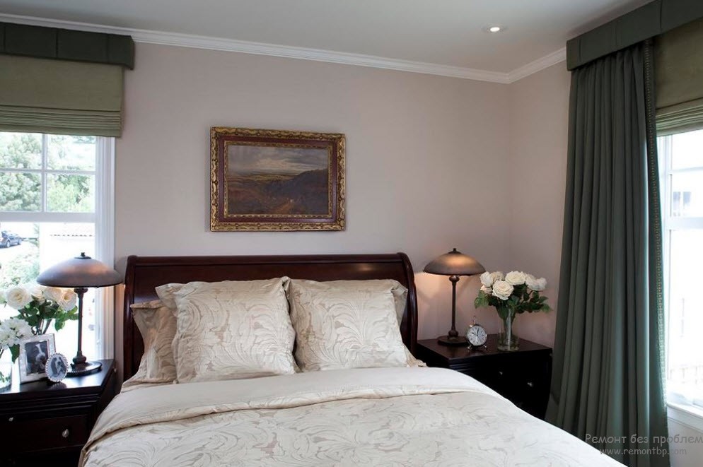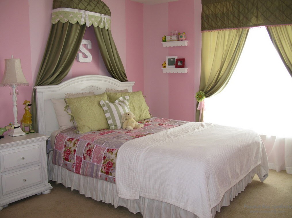В том случае, если вы хотите сделать спальню более яркой, то можно добавить нежно-розовый, бежевый, желтый или оранжевый цвета. Для этого помещения лучше всего использовать нежные тона как оливкового цвета, так и добавочных цветов. Не стоит увлекаться темными оттенками, используя тяжелые шторы или портьеры. Даже если такая светомаскировка спасет днем от яркого солнца, то в сумрачное, или темное время суток обстановка может получиться мрачной.