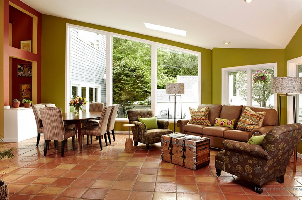 Важно учитывать, что оливковый цвет более применим к классическому стилю, чем экзотическому, и поэтому не нужно перегружать интерьер излишне яркими или тяжелыми деталями.