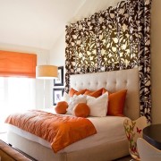 Хотя считается, что бодрящие тона не очень хорошо подходят для спальни, тем не менее этот жизнеутверждающий и бодрящий цвет, создаст в ней комфортную обстановку для сна. Хотя мы и не видим окружающий нас цвет, выключив свет, но, тем не менее, цвет, который мы видим, до того как уснем, будет влиять на эмоциональное состояние, которое отразится на качестве и продолжительности сна. Более того, доказано, что оранжевый цвет способствует расслаблению мышц, а это помогает быстрее уснуть. Давайте сначала рассмотрим спальни, с присутствием оранжевого цвета в небольших количествах.
