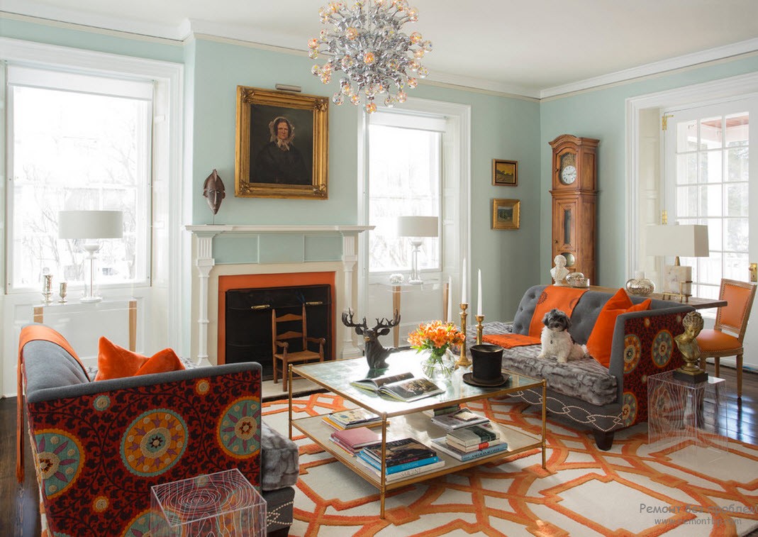 Оранжевый рисунок на полу