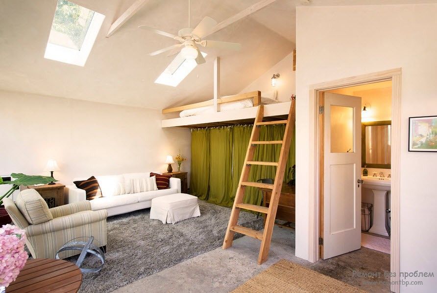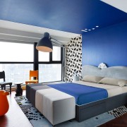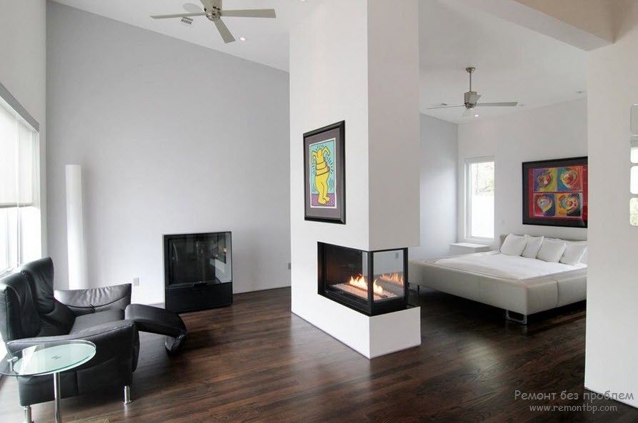 Бывает так, что небольшие размеры Вашей квартиры не дают возможности выделить для спальни отдельную комнату и ее приходиться совмещать с рабочим кабинетом или же с гостиной. В этом случае спальная комната должна быть разграничена на самостоятельные зоны. Это достигается за счет использования многоуровневых потолков либо разного освещения в каждой из зон.