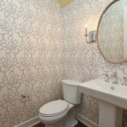 Казалось бы, материал, применяемый по большей части для оформления внешнего имиджа помещений, не будет смотреться внутри. Однако практика показывает, что обои под штукатурку смотрятся достаточно привлекательно, довольно успешно маскируя излишнюю холодность исходного материала.