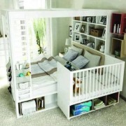 - антресоль. Необычный и современный способ эффективного и вместе с этим функционального зонирования зоны для сна – размещение кровати на возведенном втором уровне. Благодаря такому приему появляется дополнительное пространство для удобной организации гардеробам или, например, обустройства рабочего места.