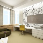 В данном случае речь идет не столько о возрасте, сколько о настроении. Молодежное оформление имеет немного общего с экстравагантным, однако отсутствуют явные несочетающиеся элементы декора. Стены, как правило, оклеиваются яркими обоями, или красятся покрытиями необычных оттенков и их сочетанием. Допустимо использование декоративных пленочных аппликаций в виде цветов, городских пейзажей, надписей на иностранных языках и т.д.