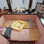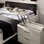- на подиуме. Конструктивно данный прием выглядит как подиум со ступенями, на который помещается большой упругий и объемный матрас с необходимым бельем или любыми другими необходимыми для сна атрибутами.