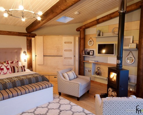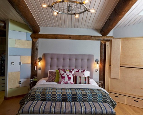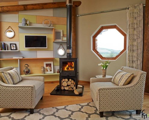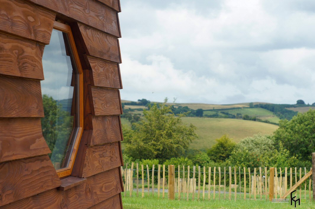 В этом домике, напоминающем жилище сказочных персонажей, все выглядит необычно. Для окон небольшого размера дизайнеры выбрали форму восьмиугольника. Это решение позволило сохранить значительную часть стен для трансформации пространства и одновременно создать источники естественного освещения: