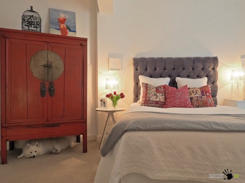 Легкий оттенок стилей Прованс или шебби-шик присутствует в оформлении спальни. Тот случай, когда дизайнерские предметы меблировки и декора отлично сочетаются с элементами сельской жизни или ретро-стилистикой.