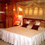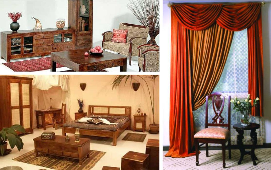 Для спальни наилучшим решением считается так любимая европейцами мебель из индийского тикового дерева. Она очень прочная, удобная и имеет изысканный вид, но ценна не столько качественным деревом, сколько великолепным дизайном. А широкий балдахин придает интерьеру поистине восточный вид. Только важно помнить, что категорически не рекомендуется располагать кровать в центре комнаты.
