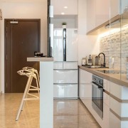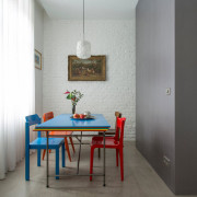 В одном из ответвлений прихожей – длинном и узком коридоре расположилась система шкафов-купе для верхней одежды и не только. Удобное кресло необходимо хозяевам для комфортного переобувания.