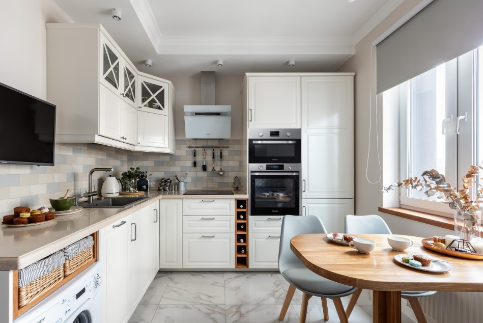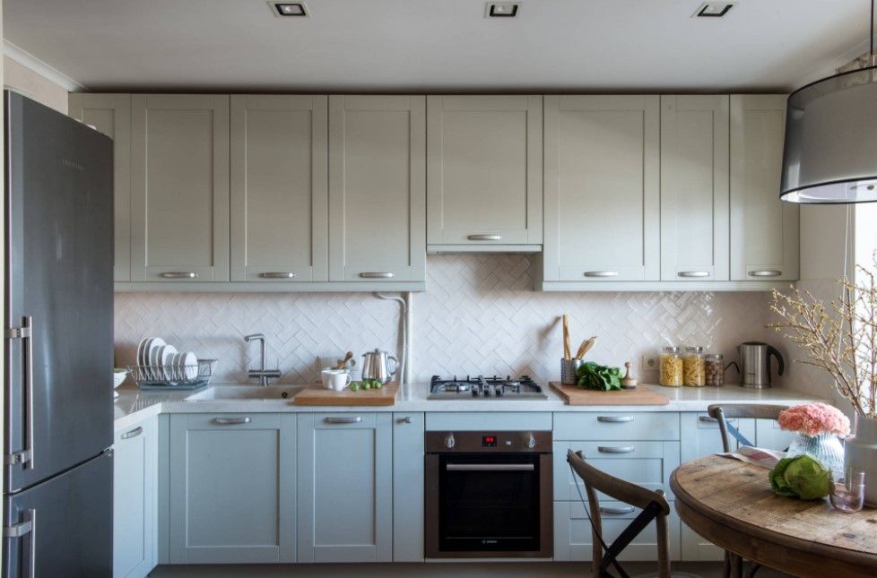 Да именно так! Рабочая поверхность перестает быть рабочей и просторной при наличии огромного, излишнего количества разнообразных кухонных гаджетов, приспособлений, которые очень часто располагают на рейлингах над этой зоной. И далеко не всегда хозяйка пользуется всеми чудо-аксессуарами. Поэтому проведите ревизию этих вещей в рабочей зоне, чтобы они не усложняли процесс приготовления пищи и не перегружали пространство кухни. Часто бывает так, что о местах хранения, способах применения, назначении некоторых предметов на кухне знает только женщина, а остальные домашние нет. Поэтому рекомендуем посвящать и приобщать всех членов семьи к правилам кухни.