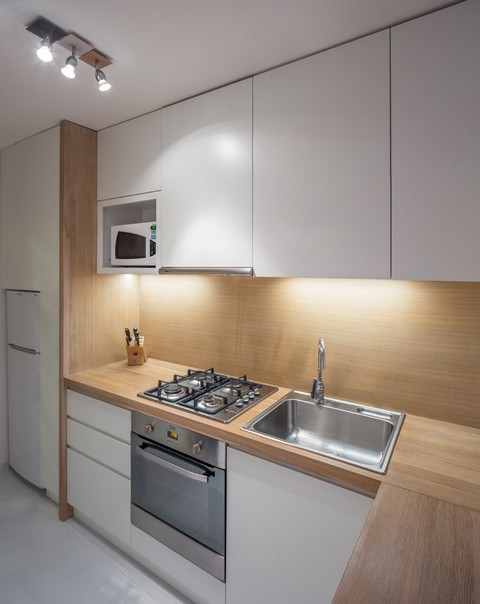 Многие дизайнеры считают ошибкой однорядную планировку, потому что пользователь в таком варианте нуждается в преодолении больших расстояний. В таком варианте отсутствует правило кухонного треугольника, что в первую очередь ухудшает функциональность пространства. Хотя в некоторых случаях поддержание подходящих расстояний между оборудованием значительно облегчает работу.