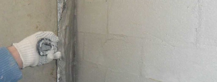 - при расшивке рустов на стыках панельных перекрытий и потолках;