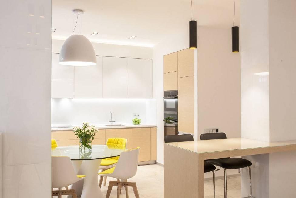 Поэтому расстояние обеденной поверхности от осветительных приборов не должно быть менее 0,8 метра. Говоря о потолочном освещение нужно учитывать высоту потолка: чем он выше, тем и осветительные приборы дальше.