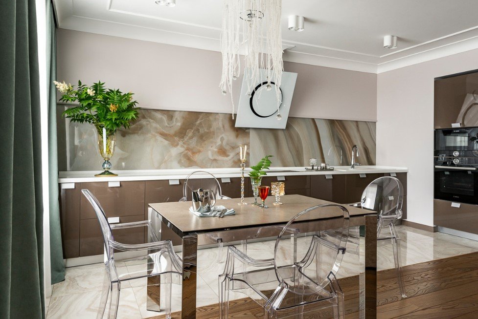 Также создать определенную атмосферу в обеденной зоне помогут свечи, светящиеся надписи на стене, ночники и вспомогательные аксессуары. Например, зеркала или глянцевые поверхности, которые лучше прочих отражают свет и рассеивают его по комнате. А в праздничные дни дополнительным светом могут стать гирлянды. Так или иначе, оформление обеденной зоны светом также важно, как и подбор других составляющих интерьера. Ведь хороший аппетит и настроение гарантируют жизненную энергию для побед во всех сферах жизни!