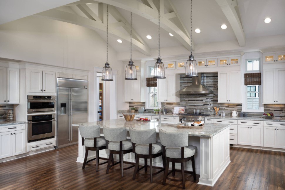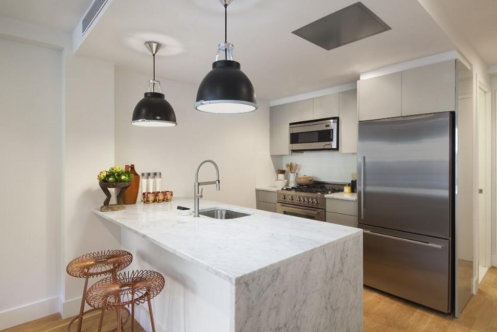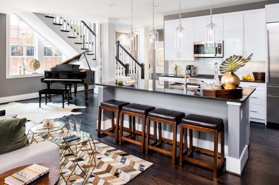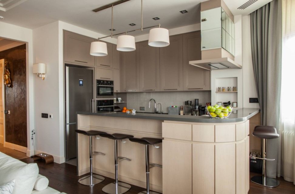 В выборе осветительных приборов также следует учитывать стиль, в котором выполнена кухня или гостиная.