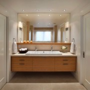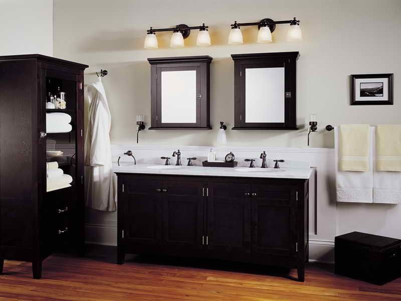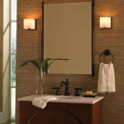 Не стоит допускать попадания на источник света воды. Поэтому идеальным вариантом является потолочное освещение. Если же есть необходимость дополнительно подсветить зону зеркала, то лучше расположить осветительные приборы по бокам от него. В этом случае наиболее подходящими станут настенные бра с закрытым корпусом, лампы же не должны быть слишком яркими.