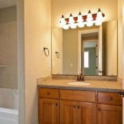 Количество источников света зависит от площади помещения и высоты его потолка. Исходя из правила номер один, гласящего о наибольшей освещенности ванной комнаты, несложно догадаться, что чем больше помещение, тем больше осветительных приборов должно использоваться.