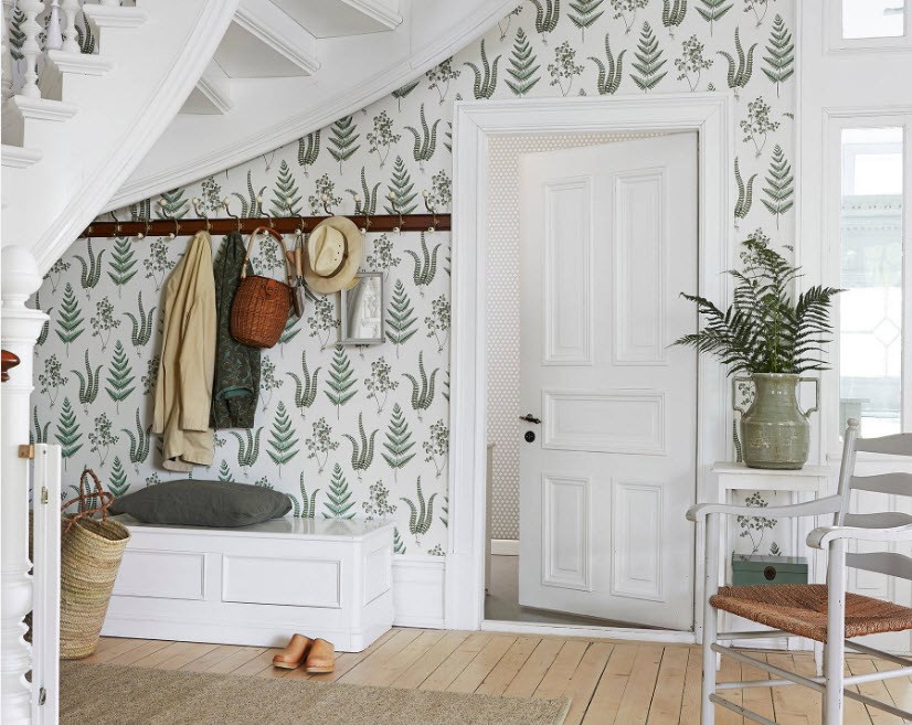 Белые обои, на первый взгляд, довольно непрактичный вариант, но выбор такого цвета поможет вам создать ощущение чистоты и простора в своей прихожей, а мебель контрастных цветов будет смотреться на их фоне особенно интересно.