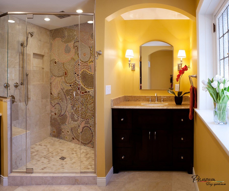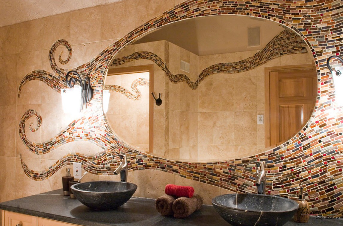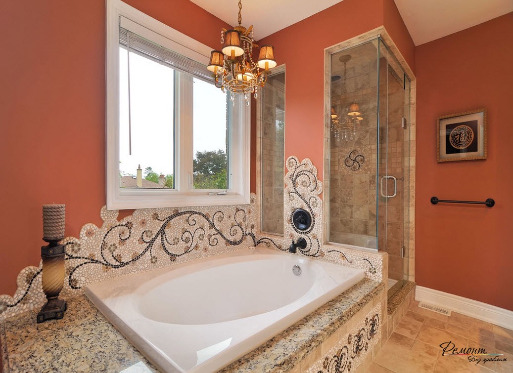 Мозаикой можно воплотить практически любую творческую фантазию. Ванная комната станет своего рода произведением искусства. Наглядным примером является янтарная комната в Калининграде. Конечно, ваша комната не достигнет ее уровня, но что-то подобное вполне достижимо.