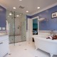 - как вариант, можно по фантазировать со стеклянными стенками душевой кабинки. Они могут быть как прозрачными, так и полупрозрачными.
