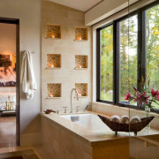 При определенном финансовом достатке, вы можете из ванной также сделать произведение искусств, достойное королей. Выглядит эффектно и роскошно. Конечно, здесь без помощи специалистов не обойтись. Работа потребует большого умения и опыта дизайнерской работы. Но что не сделаешь для себя, любимого.