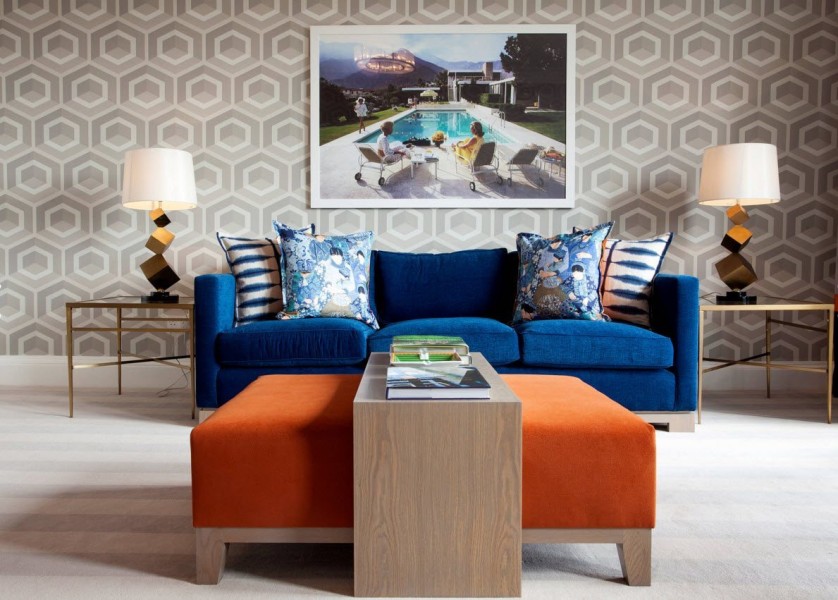 Оттоманка яркого, колоритного цвета моментально становится центром притяжения взглядов. Располагаясь, как правило, в центре зоны отдыха, а значит и по центру комнаты, этот предмет мебели становится островом, вокруг которого выстроена остальная мягкая меблировка.