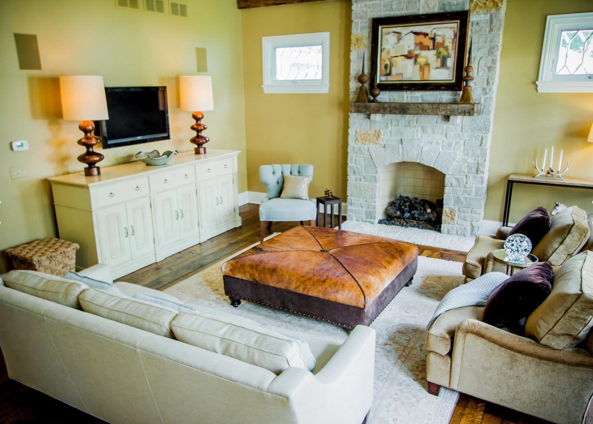 Обивка из коротко стриженого меха или текстиля, имитирующего шкуру животного, например коровы – отлично будет смотреться в интерьер стиля кантри. Лучше использовать столь колоритную расцветку обивки только в центральном предмете мебели гостиной – в мягком острове.