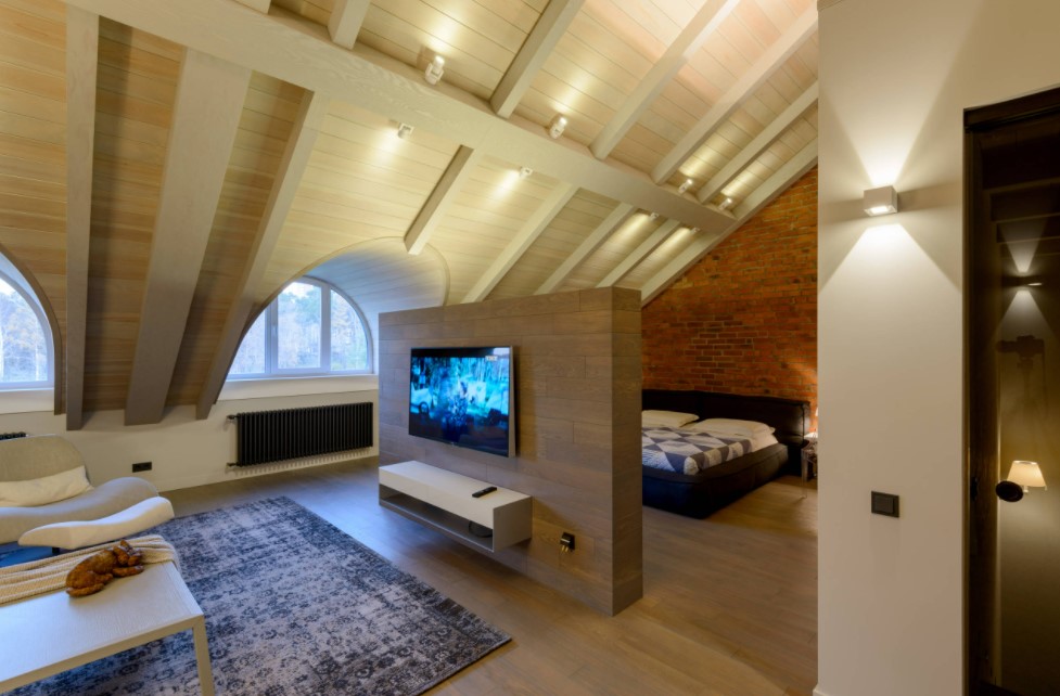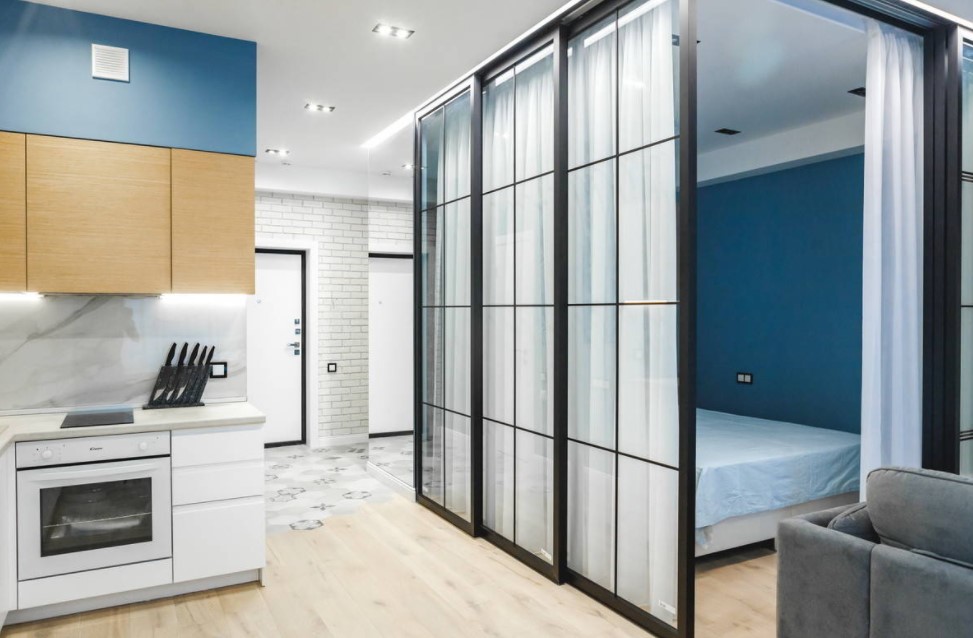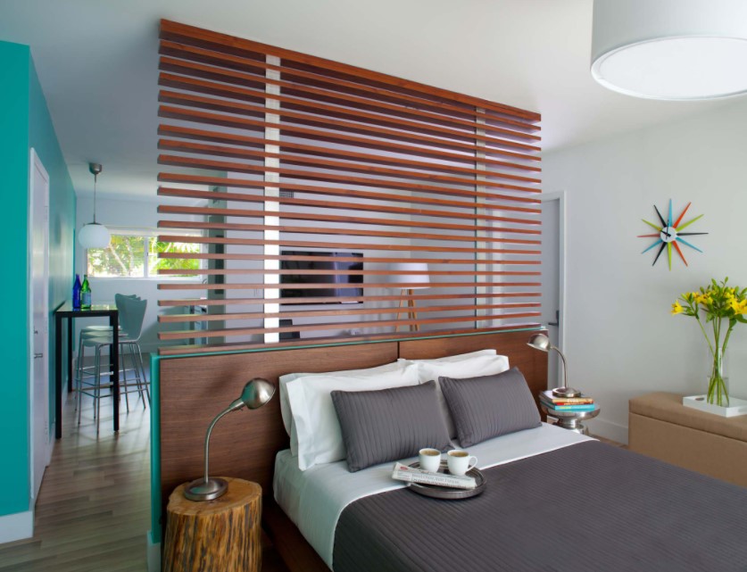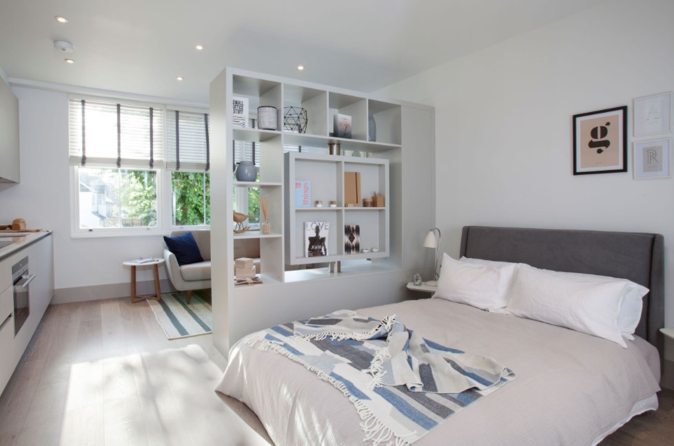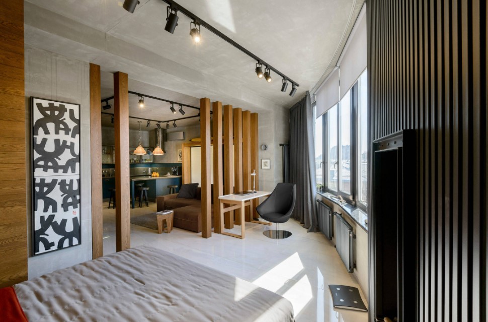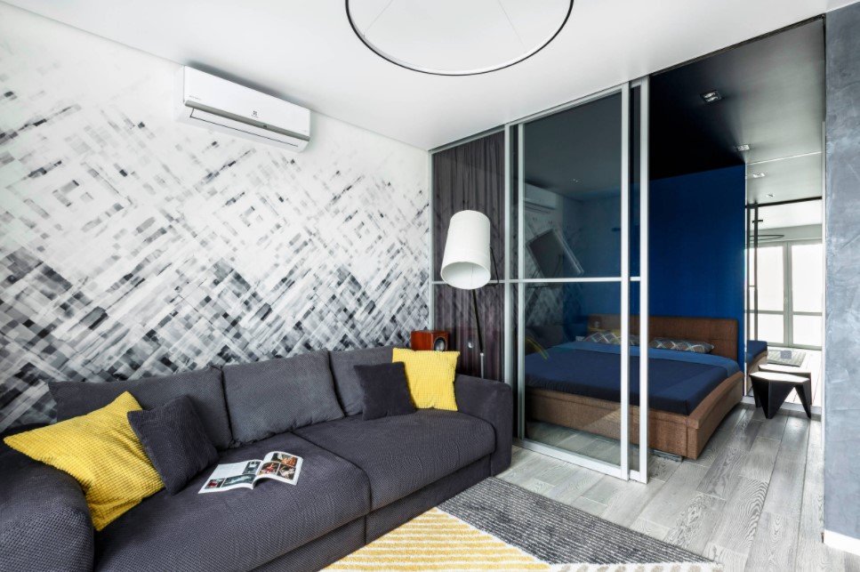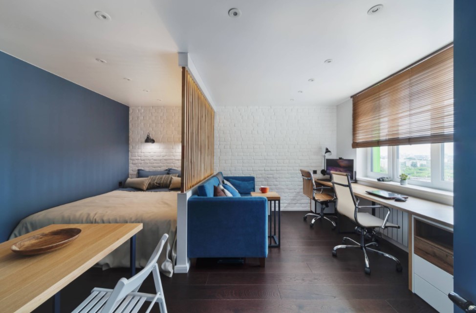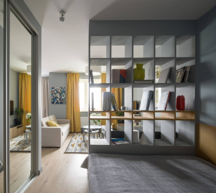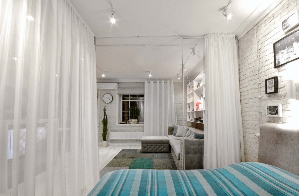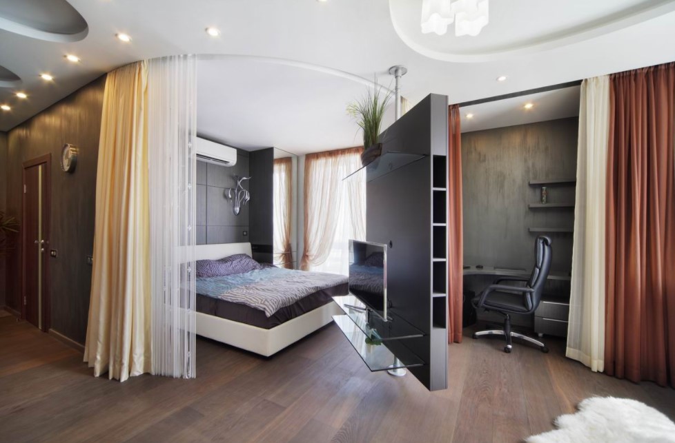 Совмещение спальни и гостиной очень актуально для малогабаритных квартир. Наилучшим образом выполнить совмещение и зонирование нам позволяют определенные компактные виды перегородок. Среди самых удачных решений: