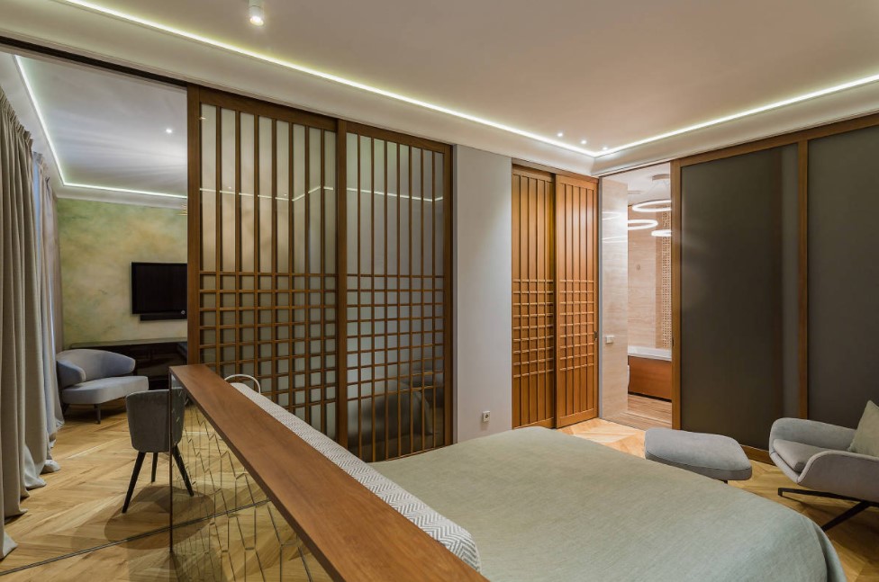 Вопросы перепланировки и зонирования спальни в современном дизайне интерьера очень актуальны. Для создания комфортного, многофункционального и красивого пространства в спальной комнате дизайнеры рекомендуют использовать перегородки.
