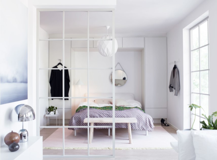 Для выполнения всех возможных функций в интерьере спальни перегородки представлены в следующих разновидностях: