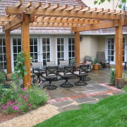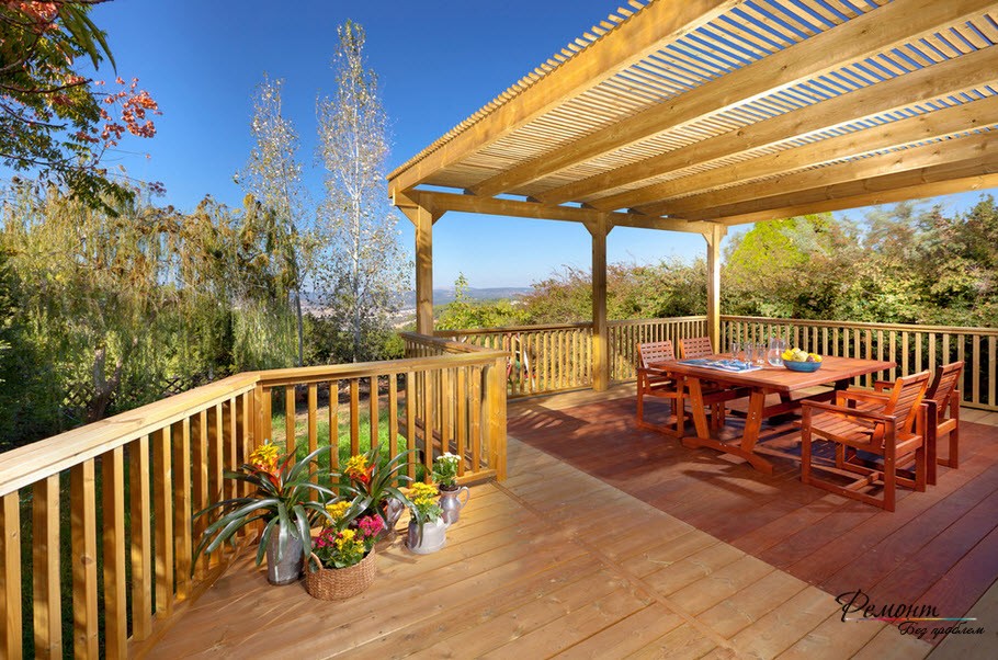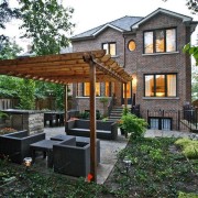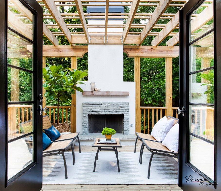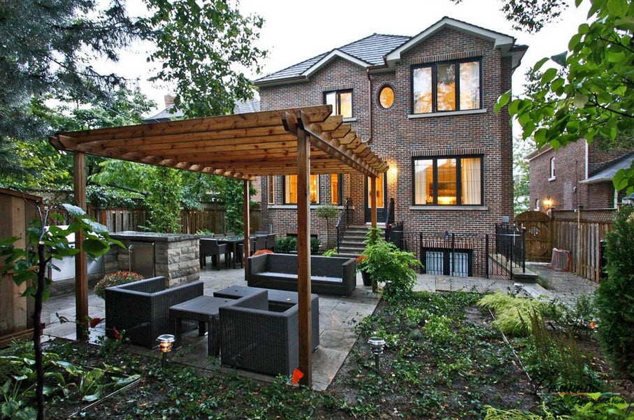 Весьма оригинальным вариантом является построение перголы, как части здания. То есть получается нечто наподобие веранды, но вместо крыши пергола, вместо стен деревянные колонны и решетки. То есть никаких стекол и так далее. Пол можно, конечно, сделать обычным, как и во всем доме и даже установить камин. Это станет неподражаемым местом для отдыха.