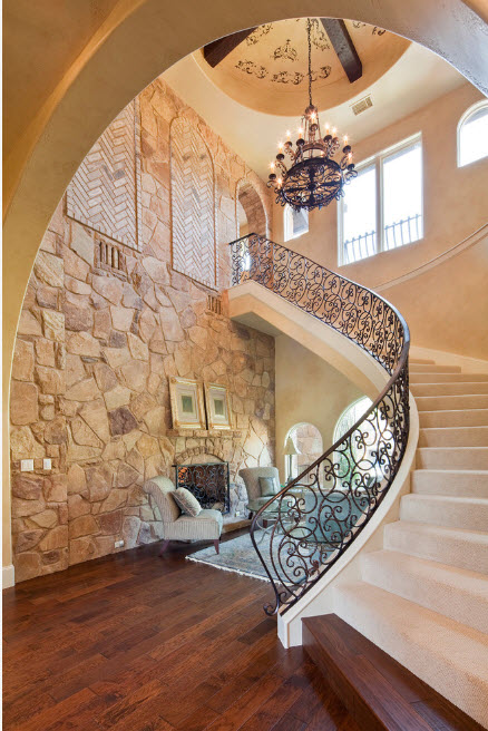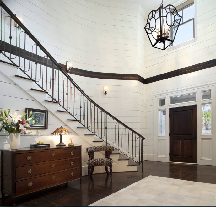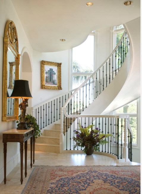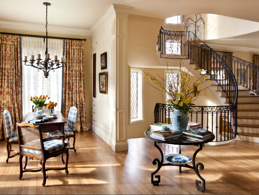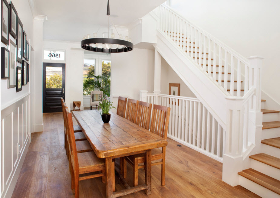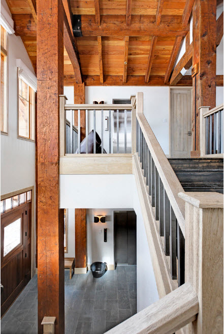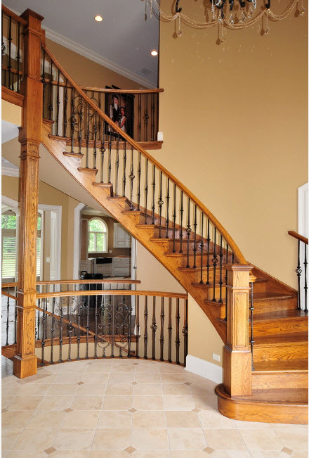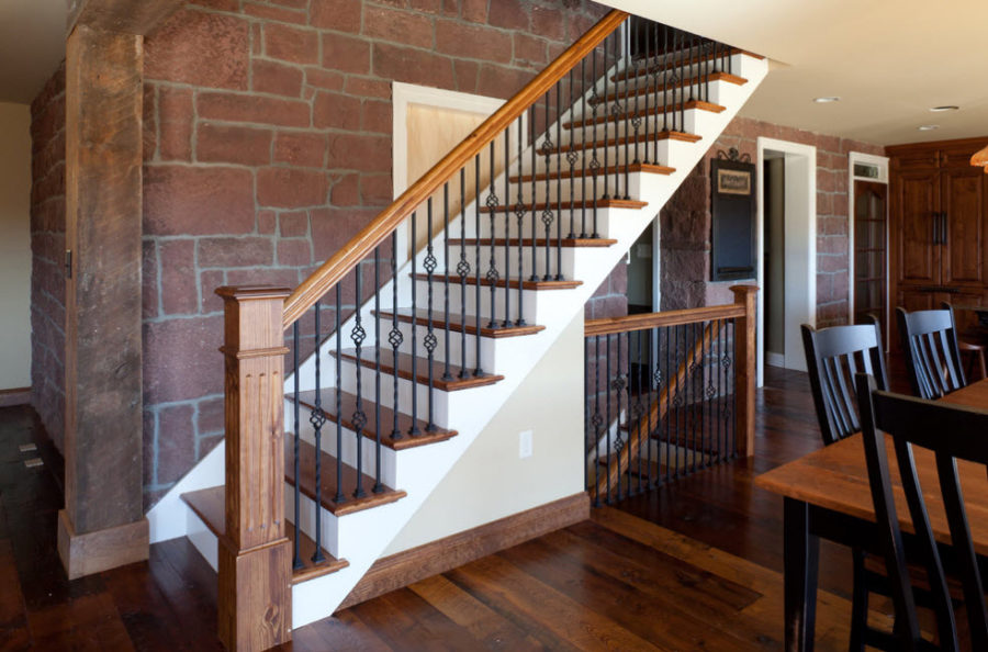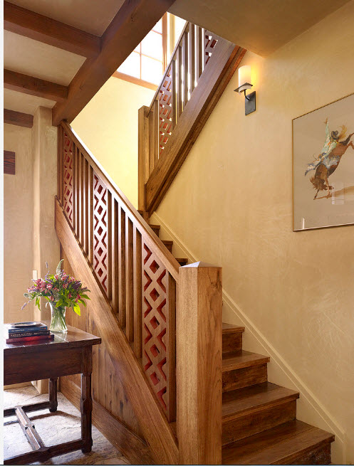 Если ваш интерьер оформлен в одном из направлений стиля кантри, или в таких стилистиках как шале, Прованс, тропический, морской, деревянные конструкции лестниц в целом и перил в частности будут более чем уместны. Красивый природный рисунок древесины не только привносит особую атмосферу в образ помещения, но и подчеркивает самобытность других предметов интерьера.
