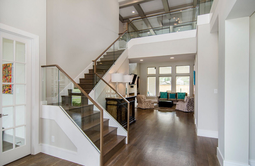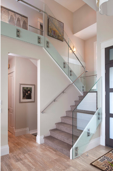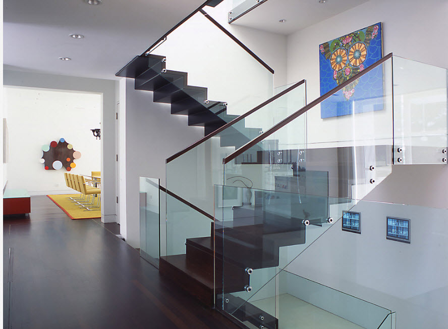 Еще одно важное преимущество стеклянных перил, которое необходимо отметить отдельно – прозрачность конструкции. Солнечный свет практически беспрепятственно проникает через защитные экраны лестницы, создавая легкий и светлый образ всего помещения, не загроможденного лестницей.