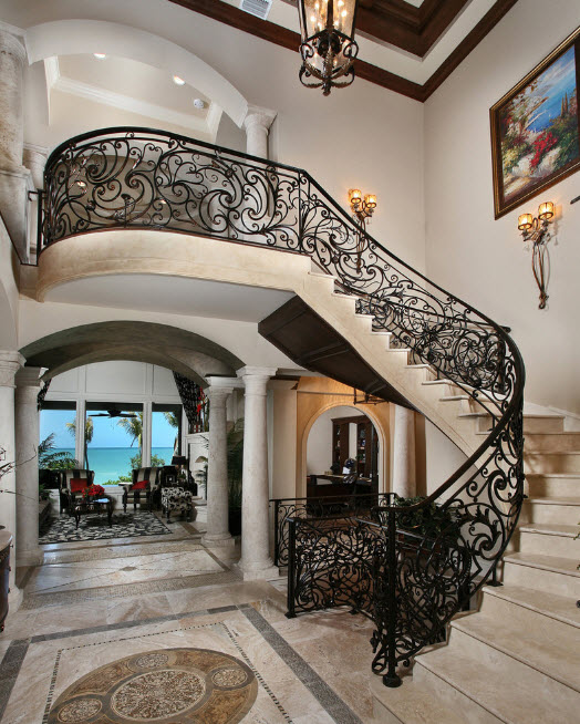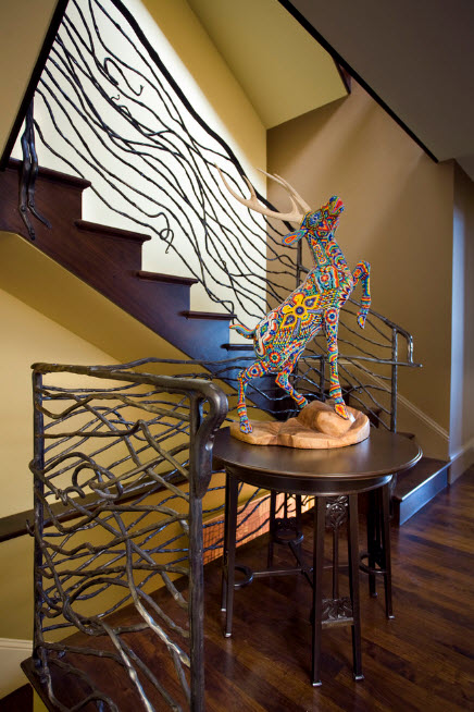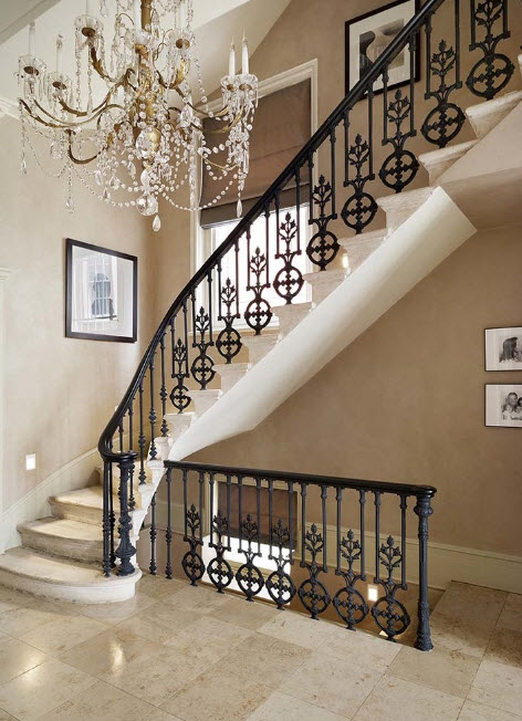 при создании роскошного интерьера, в котором конструкции лестницы отведена ключевая роль, наилучшим вариантом станет использование художественной ковки – эксклюзивный дизайн и великолепный внешний вид долговечной конструкции компенсируют все затраты.