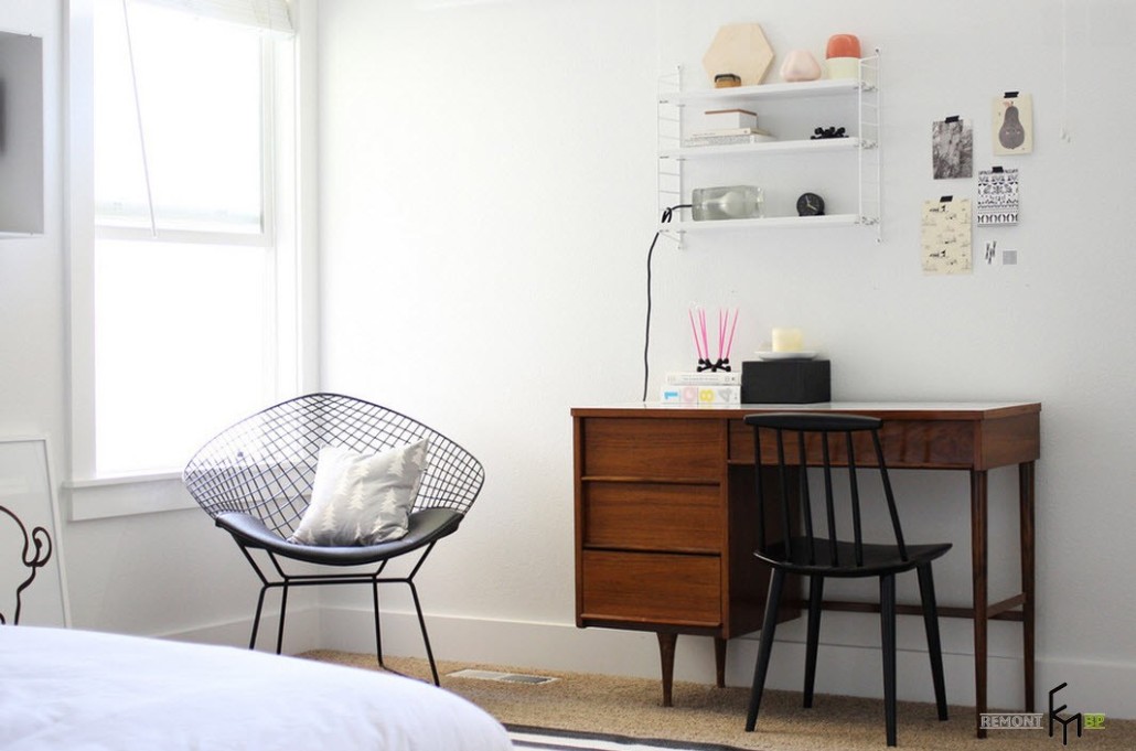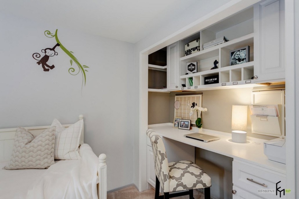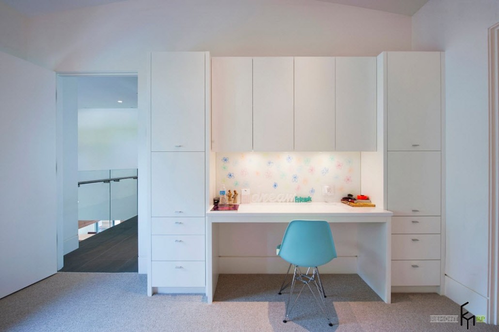 Особенное внимание необходимо уделить письменному столу для ребенка. Практичным вариантом может стать модель с изменяющими высоту ножками. Стол будет «расти» вместе со своим маленьким обладателем. В пару к такому предмету мебели необходимо приобрести и кресло с варьирующейся высотой и наклоном спинки.