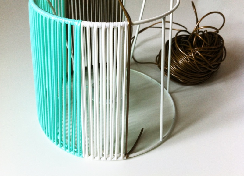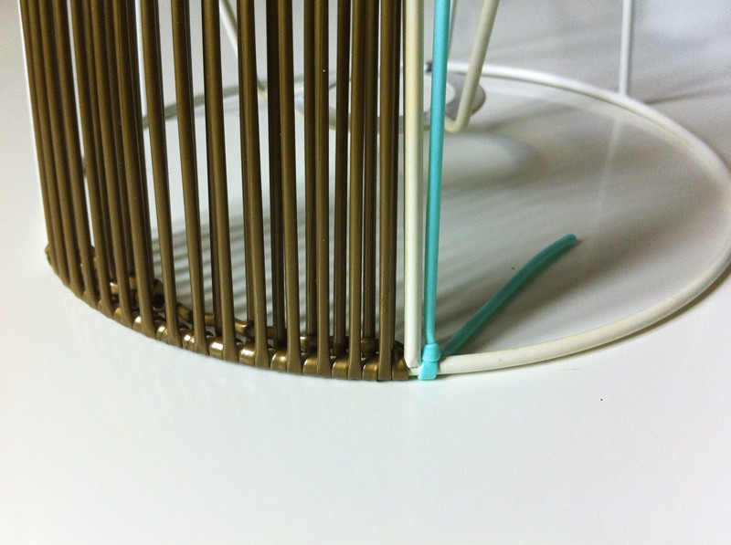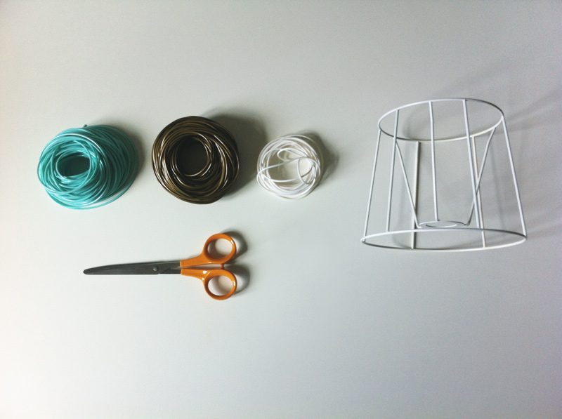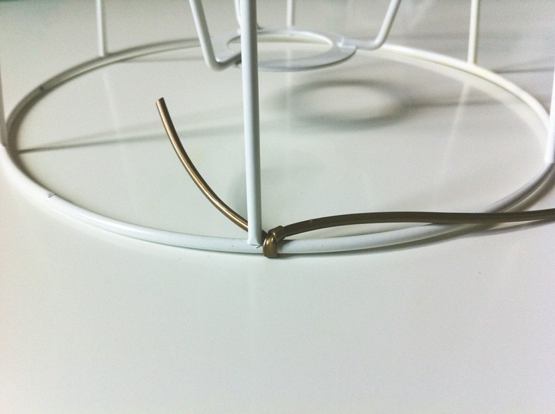 Шаг 5: Готовое полотно прикрепите на металлический каркас от абажура старой лампы.