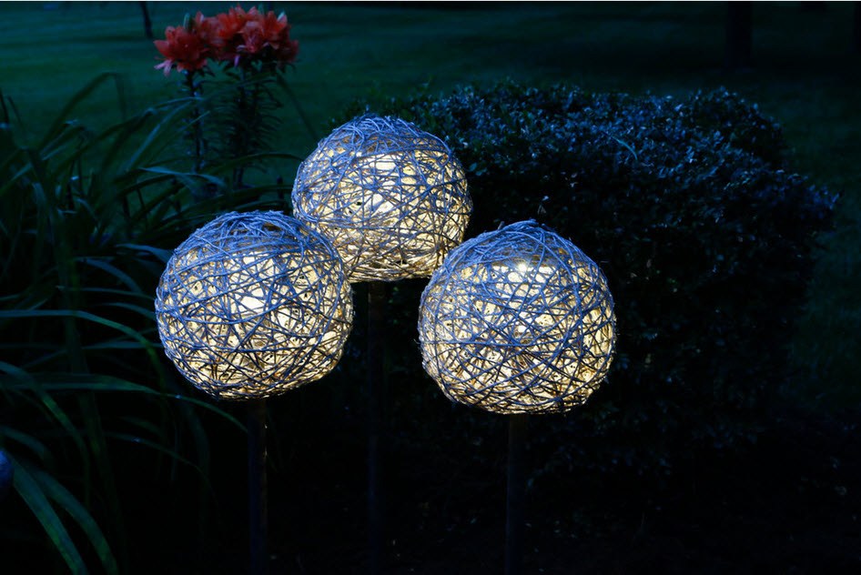 Садовые светильники на солнечных батареях с веревочными плафонами
