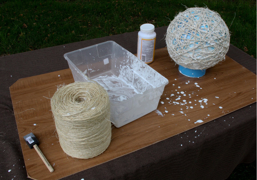 Что касается времени, то сама сборка конструкции у вас займет не более 15 минут, и только процесс высыхания веревочных шаров – несколько дней.