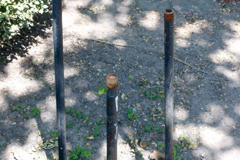 - три металлических трубки длиной 1,2 м и диаметром 2 см, с резьбой на конце;
