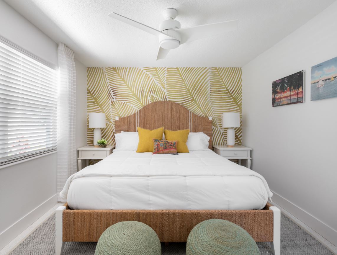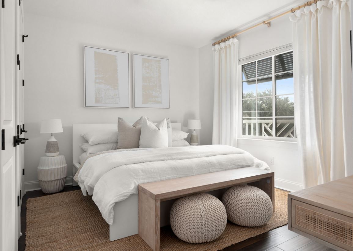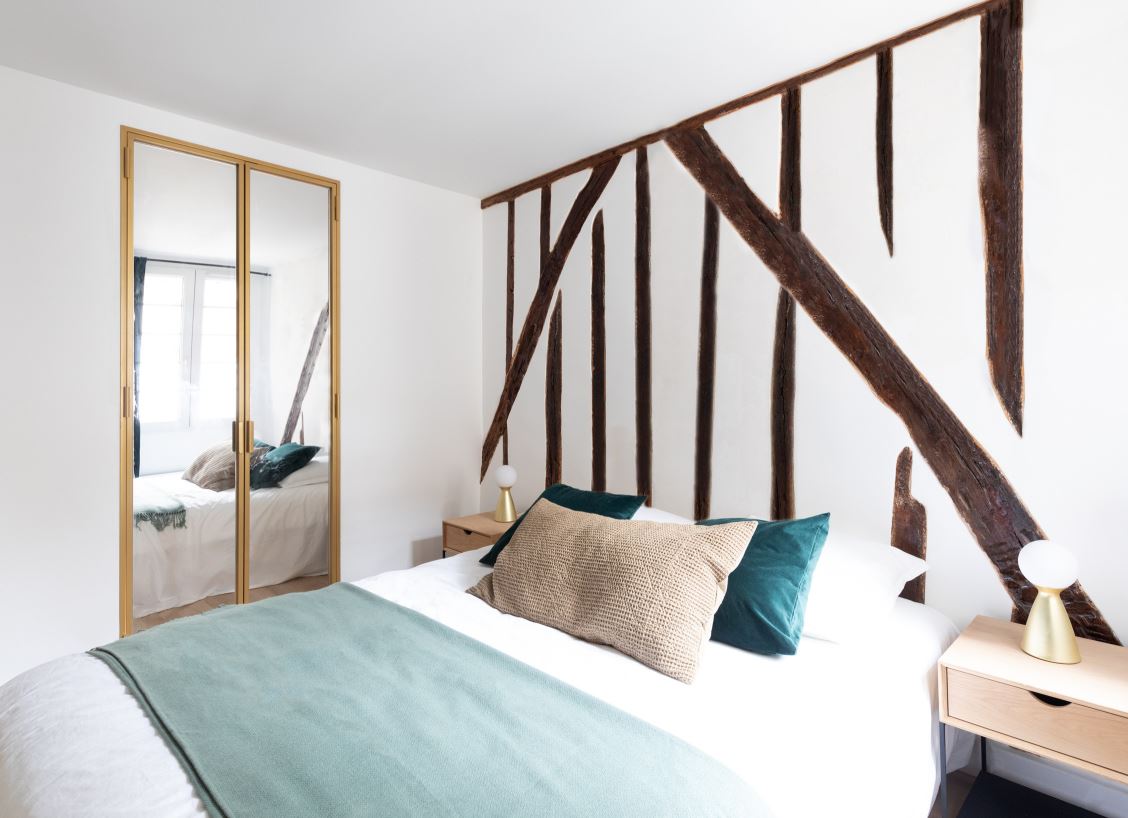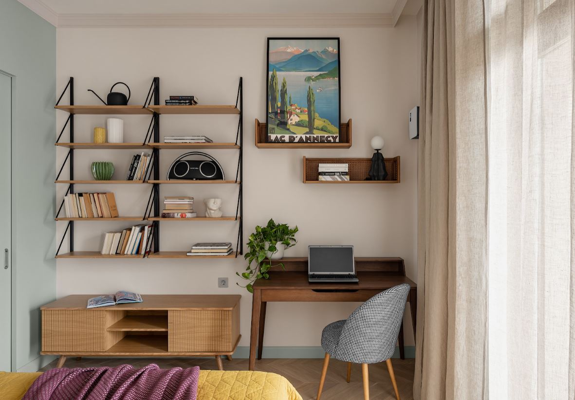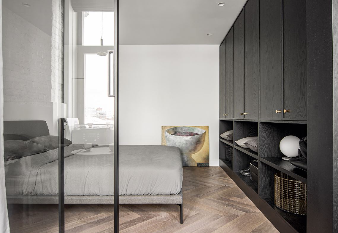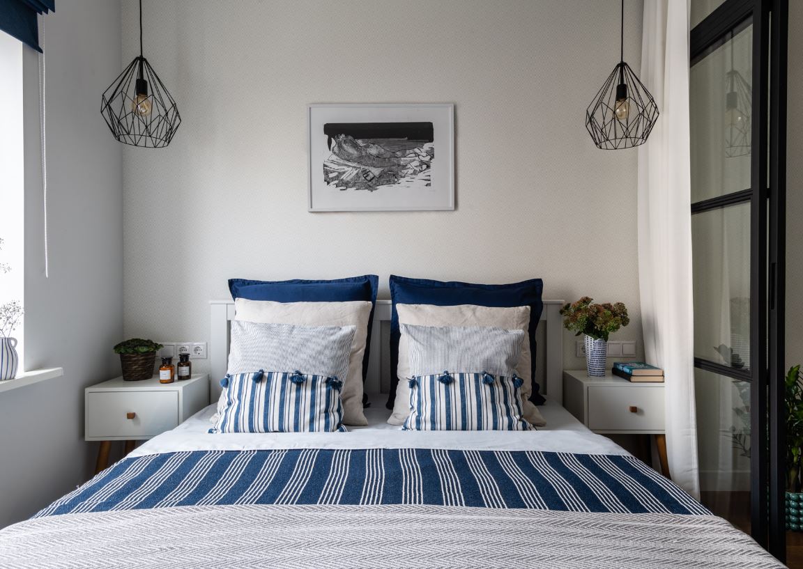 Гармонично впишется в малогабаритный спальный интерьер минимализм и сканди.