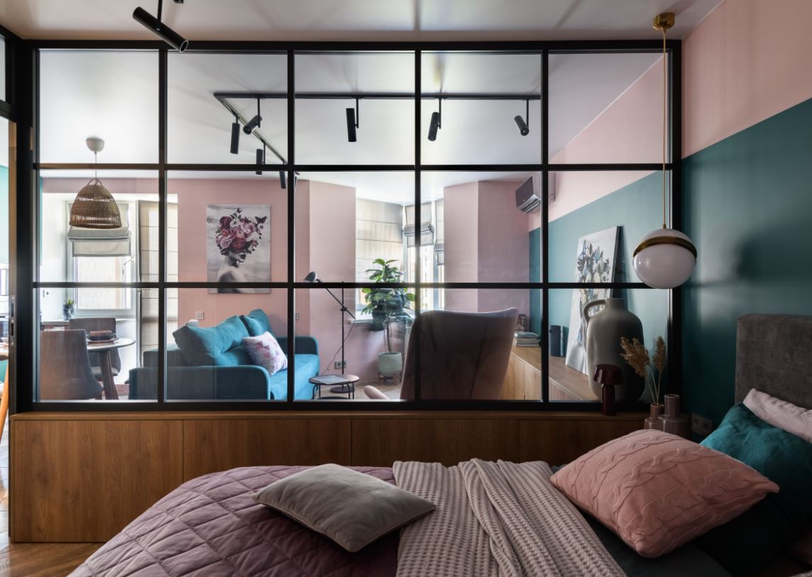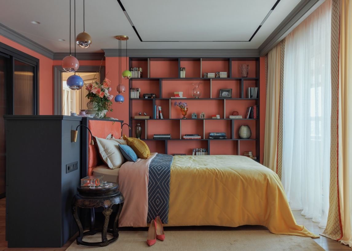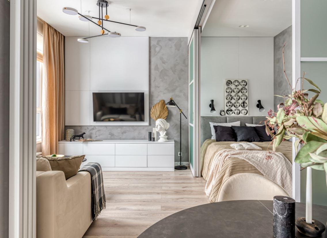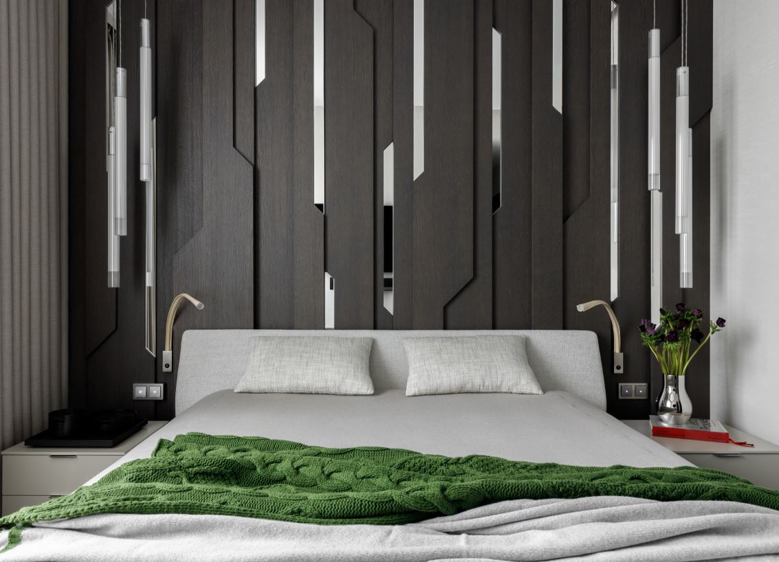 Современные принципы эргономики в дизайне предполагают использование эффективных приёмов зонирования, правильной и продуманной меблировки, в том числе, использования мебельных трансформеров, выбор гармоничной цветовой палитры, преимущественно, теплых, светлых тонов, размещение зеркальных элементов для визуального расширения пространства спальни.