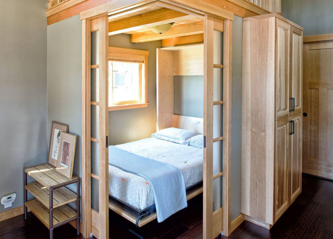 Отличным решением и вариантом экономии свободного пространства является кровать с выдвижными системами хранения.