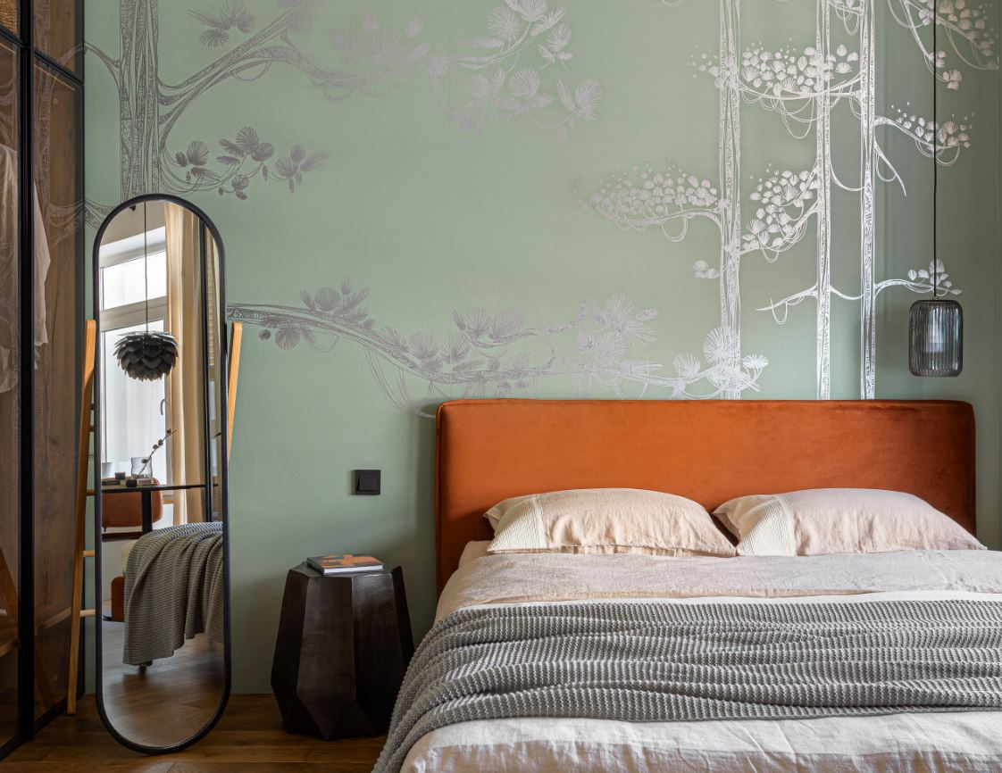 Можно использовать для отделки стен обои с объемными, расширяющими пространство, рисунками, так называемый 3D-эффект. Простора и воздушности миниатюрной спальной комнате придаст и объемная отделка стен с использованием разных фактур.