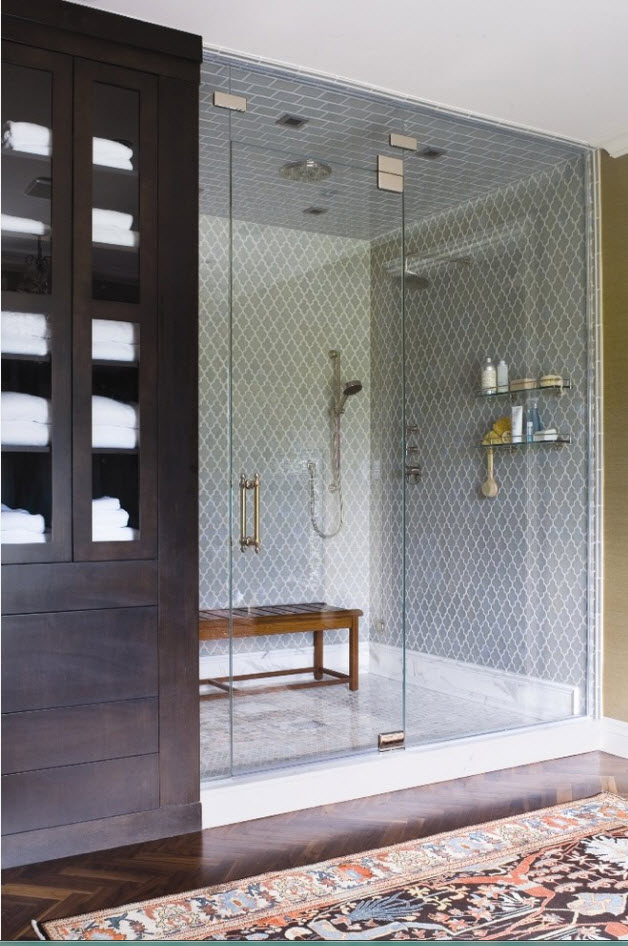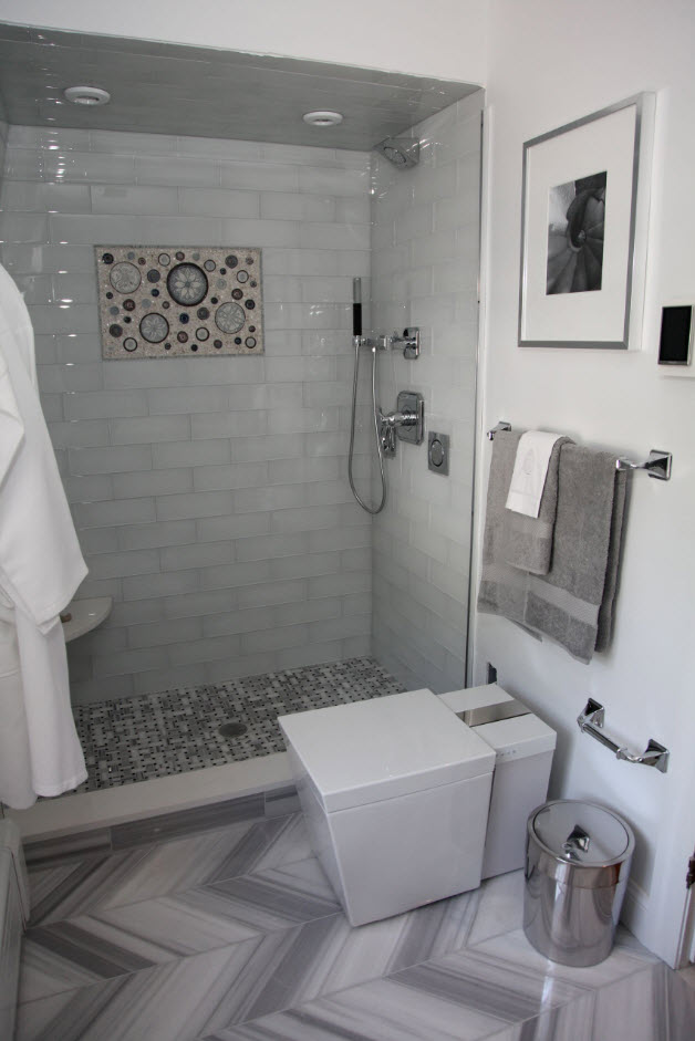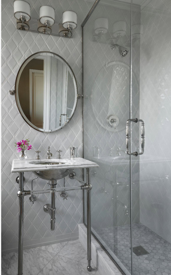 А оригинальная укладка «ёлочкой» не только привнесет разнообразие в отделку ванной комнаты, но и сделает ее интерьер креативнее.