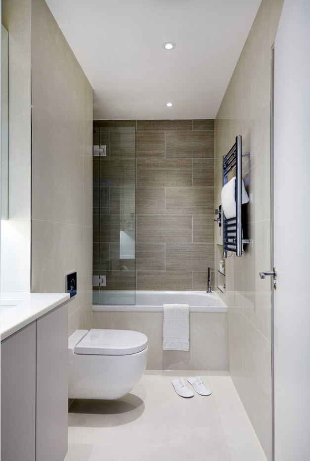 За рубежом большой популярностью уже многие годы пользуется плитка «метро». Свое название отделочный материал получил из-за изначального использования для оформления станций метро. И в настоящее время, уложенный по типу кирпичной кладки кафель считается одни из классических вариантов оформления ванных комнат. Плитка «метро» может быть глянцевой или матовой, гладкой или со скосами по периметру (так называемые фески). Ее можно использовать с затиркой аналогичного ей самой тона или контрастного оттенка. В зависимости от этого получаются различные образы ванных комнат даже при использовании плитки одного размера и цвета.