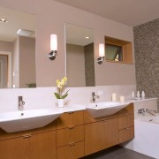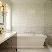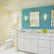 Есть несколько способов акцентировать внимание на мозаичном панно, выделив тем самым оформляемую деталь интерьера. С помощью всего нескольких разноцветных кусочков можно обновить интерьер ванной, не переделывая всю стену. Достаточно лишь выложить на месте разбитых или выцветших деталей новые кусочки и стена тут же приобретет свежий вид. В случае с обоями это невозможно.