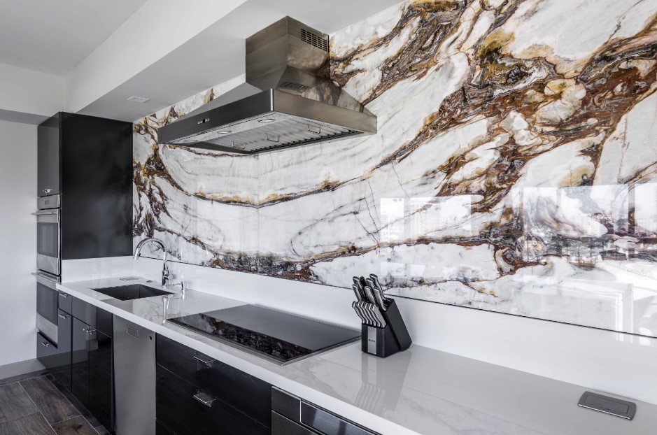 Стильные решения для отделки кухни: керамогранит под мрамор