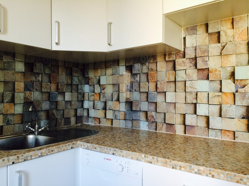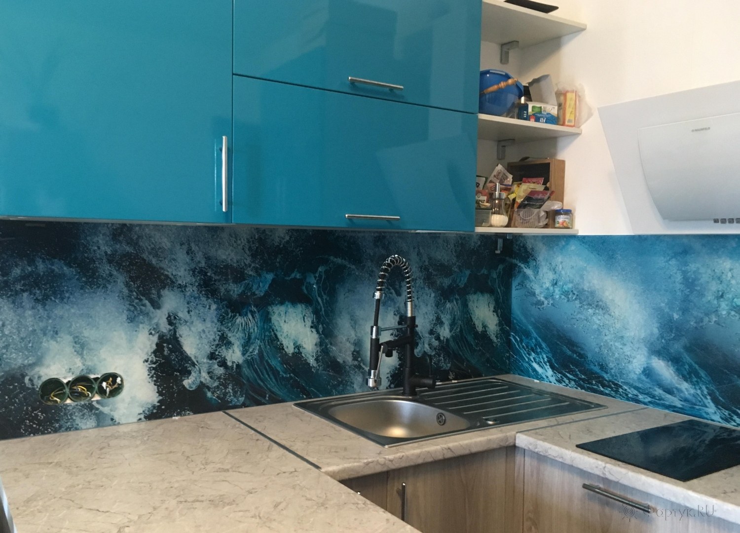 Фартук из керамогранита под синий агат: фокусная точка интерьера